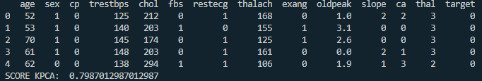 The original dataset had 13 features to try to predict a binary classification of whether the patient has heart disease or not, and now with PCA we only need 3 artificial features to arrive at a good enough result.