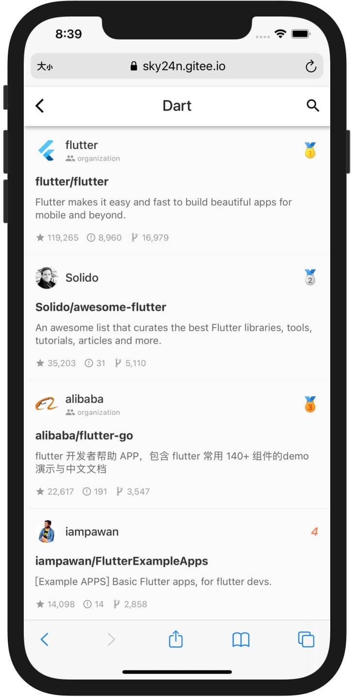 - flutter_gallery 也许是Google官方最后一个版本的gallery(旧版)。