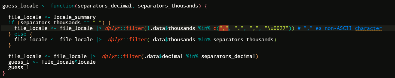 44: file_locale <- file_locale |> dplyr::filter(!.data$thousands %in% c("<d9><ac>", ".", ",", "\u0027")) # "<d9><ac>" es non-ASCII character