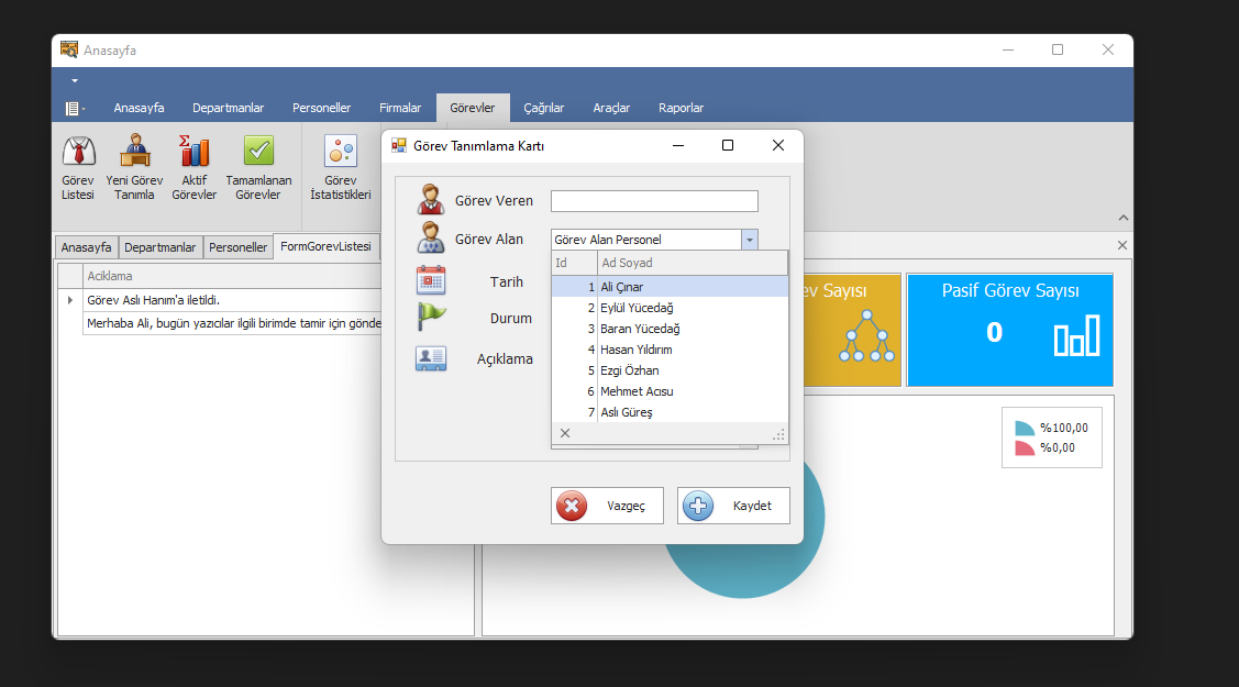 Job Tracking Desktop Application With DevExpress This project is made Windows Form and DevExpress. You can check it web application Used Technologies Frontend DevExpress Backend C# Database MS SQL ORM Entity Framework 6 Features Admin Control System 2 User Panel Available for Desktop and Web Staff Statistics A Few Photos Desktop Login Form Admin Dashboard Index Department Control Form Staff Control Form Tasks Task Assignment Form Task Assignment Form Staff Dropdown Active Tasks Links Course License MIT