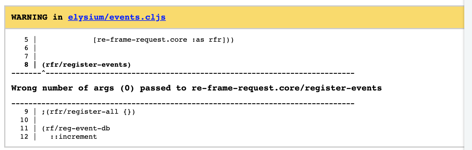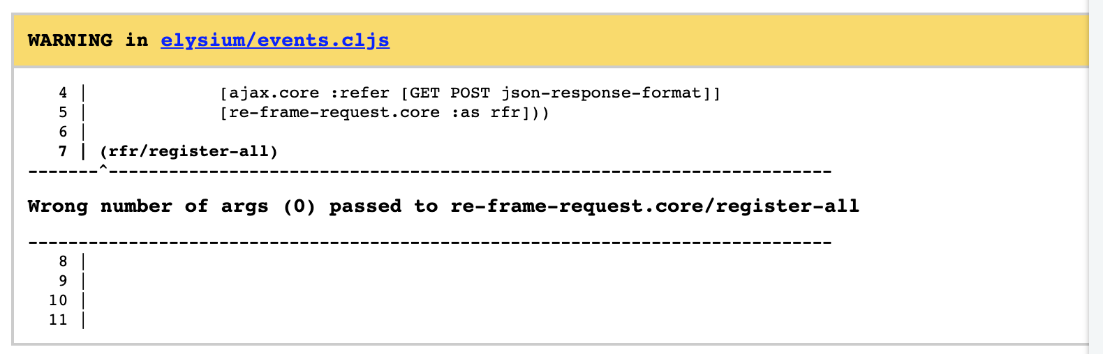 (register-events {})and(register-all {})instead, if you have no opts.cljs-ajax: