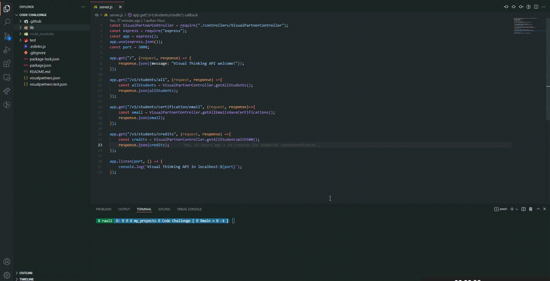 Se tiene dos pruebas de unidad, una prueba para la lectura de los archivos JSON y otro para el controlador. Los archivos se llaman VisualPartnerController.test.js y Reader.test.js.